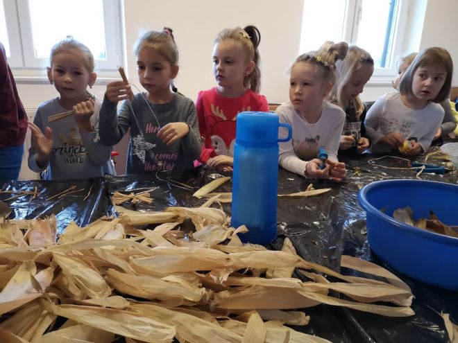 Mališani su izrađivali nakit od prirodnih materijala, kojim će biti okićen dječji bor u župnoj crkvi