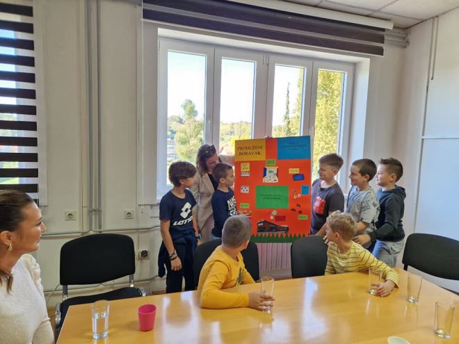 Na kraju je djecu pozdravila i gradonačelnica Jasenka Auguštan-Pentek, kojoj su mališani iznijeli zanimljive prijedloge. Učenici produženog boravka, zajedno s učiteljicom Kristinom Sviben, posjetili su ured gradonačelnice kako bi predstavili svoje ideje o tome što bi se moglo unaprijediti u gradu.