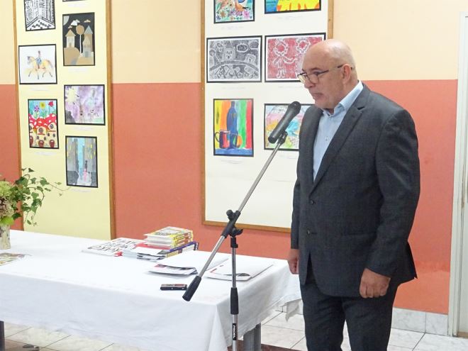 Pozdravili su ih i zaželjeli dobrodošlicu ravnatelj OŠ Marijan Posarić, gradonačelnica i saborska zastupnica Jasenka Auguštan Pentek i u ime „Školske knjige“ kao pokrovitelja izložbe književnica Željka Horvat Vukelja. Na natječaj za ovogodišnju izložbu prispjela su 844 likovna rada iz 49 škola kajkavskog govornog područja. Na izložbi je predstavljeno 90 radova, 89 autora iz 31 škole, u odabiru prof. Birgit Brlečić Pavlek i Tanje Rod.