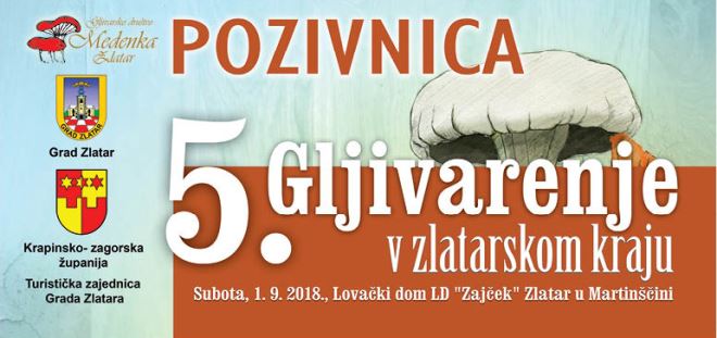 Gljivarsko društvo 'Medenka' iz Zlatara u subotu 1. rujna organizira '5. Gljivarenje v zlatarskom kraju'. Okupljanje gljivara i posjetitelja će započeti u 9 sati kod Lovačkog doma LD 'Zajček' Zlatar u Martinščini, 6,8 km od Zlatara prema Ivanščici, gdje će ih dočekati piće dobrodošlice, doručak te mogućnost prijave ekipa za natjecanje u kategoriji 'Najviše prepoznatih vrsta gljiva'.