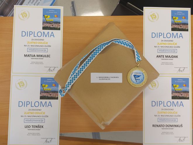 Osim stručnog povjerenstva za dodjelu medalja, koja im je dodijelila zlatne medalje, inovaciju ovih srednjoškolaca prepoznali su i sponzori, koji su im dodijelili prvo nagradu u kategoriji ocjenjivanja koje su proveli upravo sponzori te im uručili aku bušilicu.