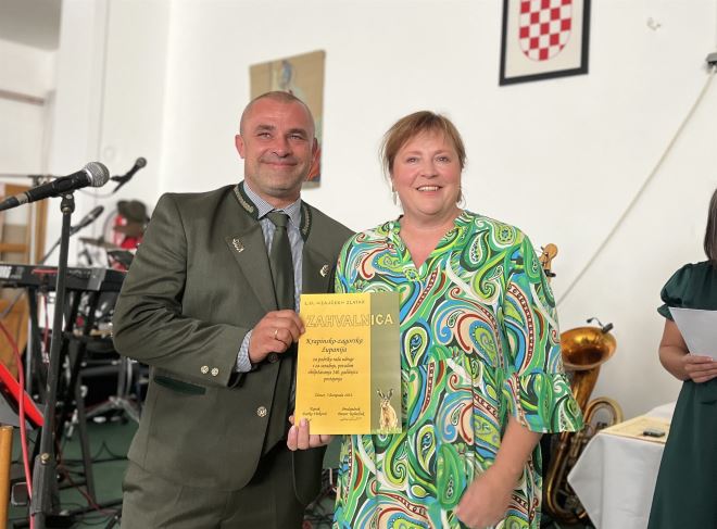 Veliku obljetnicu je zlatarskim lovcima čestitala i zamjenica župana Jasna Petek, koja je predsjedniku Lovačke udruge Zajček Davoru Kobeščaku uručila zahvalnicu koju je Udruzi dodijelio župan Željko Kolar. „Ovo je jedna impresivna tradicija od 140 godina, tijekom kojih su brojni članovi Lovačke udruge Zajček iz godine u godinu doprinosili zaštiti prirode svog zlatarskog kraja, ali i cijele Krapinsko-zagorske županije” – poručila je zamjenica župana Petek te naglasila kako se zajedničkim naporima mora raditi na osvještavanju šire javnosti o tome što lovci čine za čitavu zajednicu i zaštitu prirode.