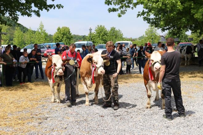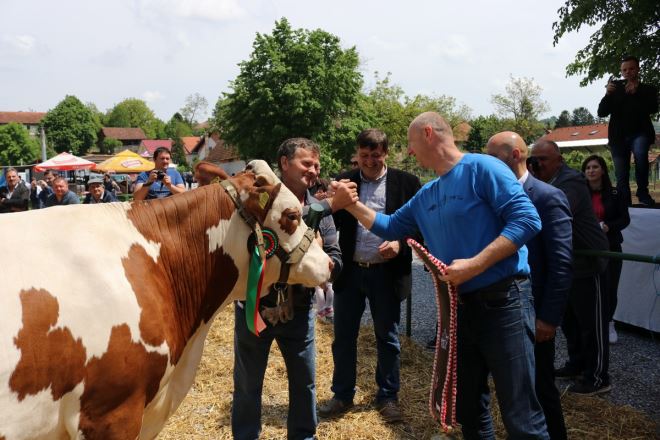 Krava simentalske pasmine Maja, vlasnika Božidara Domitrana iz Martinščine i pastuh Vihor vlasnika Mladena Šanjeka iz Hrašćine, ovogodišnja su šampionska grla 19. Izložbe stoke i 21. izložbe konja Krapinsko – zagorske županije, održane u subotu na sajmištu u Zlataru. Vlasniku šampionke Božidaru Domitranu ovo je već sedmo županijsko zvono. – To je 'strašna' krava, koju bi svaki poželio imati štali. Krava se po četvrti put otelila, prosječna laktacija joj je oko 10.000 litara mlijeka – izjavio je Domitran koji uzgaja ukupno 111 grla. Na naše pitanje isplati li se rad na poljoprivredi ističe kako je to mukotrpan rad, od jutra do večeri, no da se drže i da ih spašava količina mlijeka koju proizvedu. Ponosan je i na sina koji se prihvatio poljoprivrede i rada na selu, jer da nije, već bi i odustao, kako zbog bolesti, tako i godina. Pobjedu mu je, kaže, već normalna. Naučen je na nagrade, jer osim sedmog šampionskog zvona na županijskim izložbama, njegovo je grlo bilo proglašeno najboljim na Državnoj stočarskoj izložbi u Gudovcu.