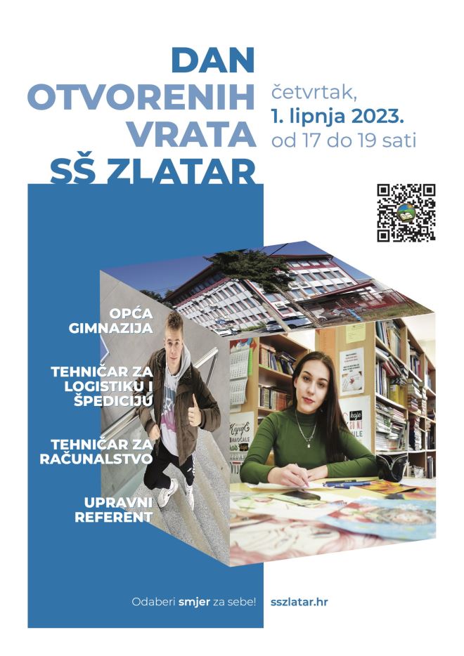 Srednja škola Zlatar i ove godine otvara svoja vrata svim zainteresiranim osnovnoškolcima i njihovim roditeljima. Učenici i nastavnici pripremaju brojne aktivnosti – info štandove za svako zanimanje, izložbe učeničkih radova, radionice, demonstracije, kvizove…