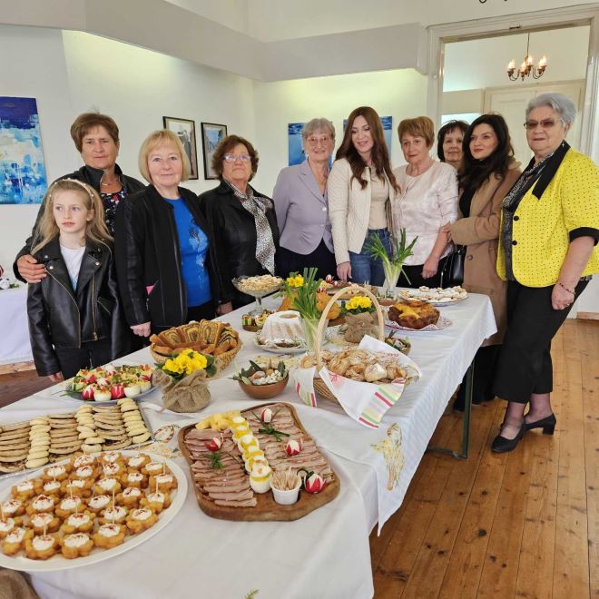 No, nije bilo samo slatkih delicija, nego i kuhane i v kruhu pečene šunke, pisanica, kuhanih jaja s povrtnim ukrasima, „sve kaj se na vuzmeno jutro nosilo na blagoslov“, naglasila je predsjednica Udruge žena Ankica Kudelić. Galerijski prostor bio je urešen i ručno rađenim pisanicama, dok su galerijske zidove krasile slike žena slikarica Krapinsko-zagorske županije.