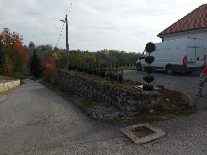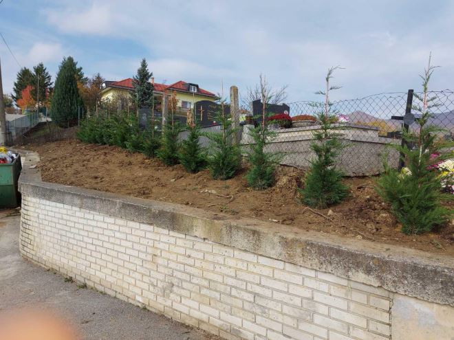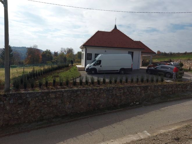 Zasađena živa ograda i ukrasno bilje oko mrtvačnice na groblju u Martinšćini