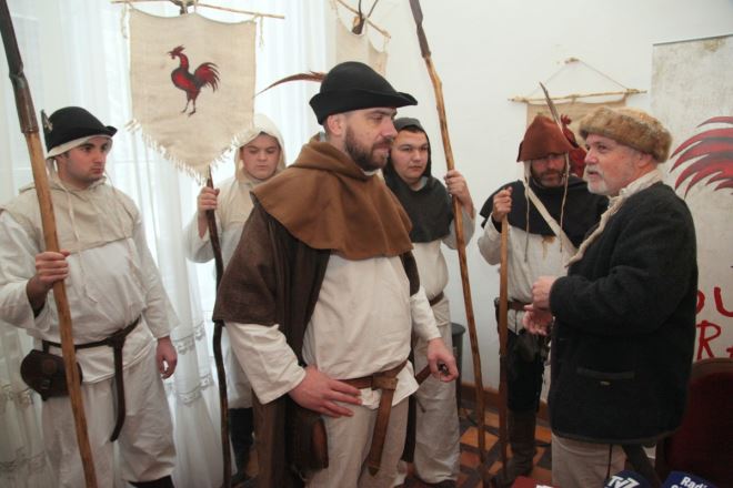 Buna traje! Ljeta 1573. voda je seljaku, pogotovo zagorskom, došla do grla. H ono doba seljaki su se digli da bi tiraniju koju nisu više mogli trpjeti prekinuli, da bi napravili poredak koji ima bolje pravde za seljaka i malog čoveka i onog ko je obespravljen i koji nema niti za jesti i kojem je zima, digli da bi se borili za pravdu - rekao je na samom početku presice Matija Gubec kojeg utjelovljuje Krešimir Končevski iz Družbe vitezova zlatnog kaleža koja već jedanaestu godinu zaredom obilježava godišnjicu Seljačke bune upriličavanjem Bitke kod Stubice u Donjoj Stubici gdje je označen kraj Seljačke bune.