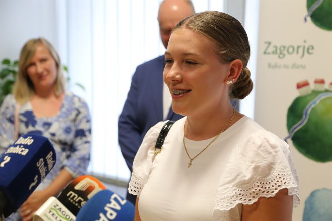 -Saznali smo iz kratkog razgovora da je Dina svestrana i u likovnom i glazbenom izražaju, pjevala je na Prvom glasu Zagorja u Začretju, a najvažnije, upisala je FER, ono što je željela, u prvom upisnom roku. Uz Dinu, još 9 učenika zabočke gimnazije upisalo je FER. To pokazuje kolika je kvaliteta obrazovnog sustava u Krapinsko – zagorskoj županiji i koliko je jaka Gimnazija u Zaboku te koliko imamo sjajnu generaciju i mladih, telentiranih, ambicioznih učenika i učenica. Možemo očekivati da ćemo imati sjajne akademske građane koji će imati dovoljno znanja i energije i koji nisu opterećeni prošlošću, ljude koji će moći voditi Hrvatsku u budućnosti da je stvorimo da bude na razini najrazvijenijih zemalja EU – rekao je Kolar te Dini uručio prigodan poklon.