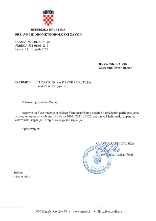 Iz službenog dokumenta, koji je potpisala ravnateljica DHMZ-a, gospođa Branka Ivančan – Picek, jasno se vidi kako tri župana na sjeveru Hrvatske razmišljaju o obrani od tuče!