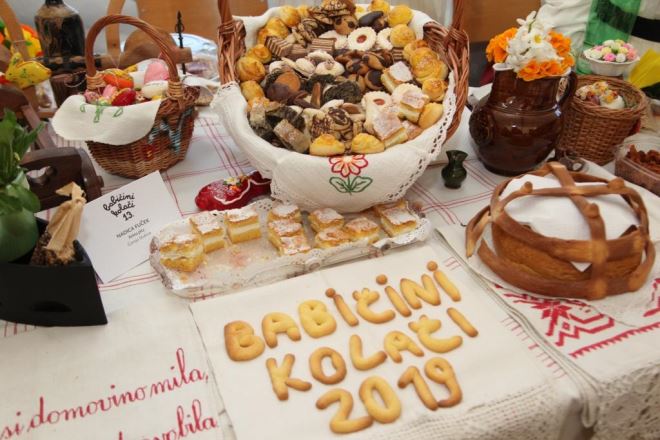Čak 42 babice postavile su danas svoje stolove, s kojih poglede mame svakojaki kolači koje su natjecateljice pripremile. Među delicijama raznih boja i okusa, nalazi se i onaj najvažniji – natjecateljski kolač za kojega se svaka natjecateljica posebno potrudila, izvukla recept iz neke stare bilježnice svoje mame, bake ili prabake i potrudila se pripremiti ga na najbolji mogući način.