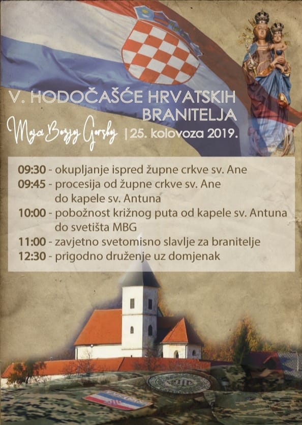 U nedjelju, 25. kolovoza održat će se Hodočašće hrvatskih branitelja Domovinskog rata Majci Božjoj Gorskoj. Svete mise u Svetištu bit će u 9:00, 11:00 i 18:00. U 10:00 bit će pobožnost Križnoga puta u svečanoj procesiji od župne crkve sv. Ane do svetišta MBG preko loborskog Zazidja. Okupljanje svih branitelja, braniteljskih udruga te limene glazbe bit će od 9:30 ispred župne crkve sv. Ane.