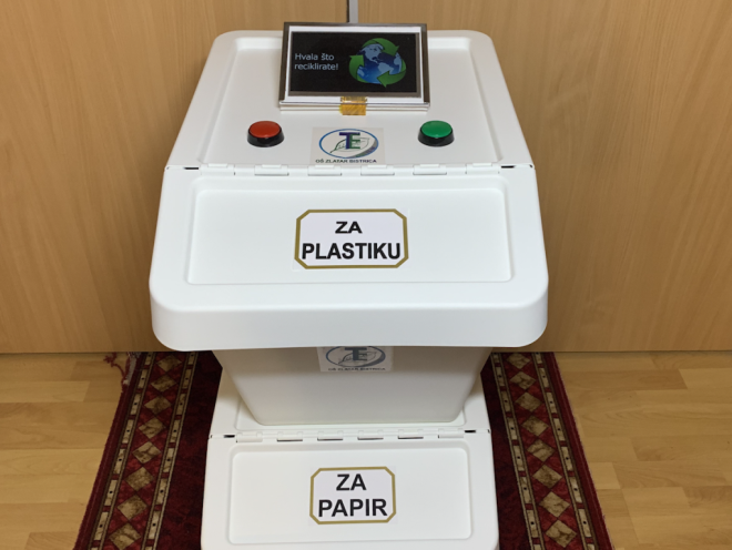 Zlatarbistrički su učenici 6. razreda, Nikola Glavač, Lukas Pavlović, Lucian Korpar i Antonio Valjak, napravili Pametni spremnik za razvrstavanje otpada. - Napravili smo poklopac za kantu koji će edukativno objašnjavati što znače oznake za recikliranje na reciklirajućem otpadu, što smijemo baciti te kante, a što ne smijemo. Sastoji se od ekrana na kojem se prikazuje video koji prikazuje oznake vrsta reciklirajućih materijala prema međunarodnim oznakama, gumb za pokretanje videa, malo računalo raspberry pi, PIR senzor, poklopac od plastike. Sastavljen je tako da na poklopcu je ekran i dva tastera za pokretanje videa. Na pritisak gumba na ekranu počet će se prikazivati video koji će objasniti što se smije baciti, a što se ne smije baciti u kantu za recikliranje. Tim informacijama educirat će se i djeca koja će znanje i kulturu recikliranja prenijeti roditeljima i poznanicima. Ispod poklopca računala nalazi se malo raspberry pi 3 računalo, PIR senzor (senzor pokreta), kontroler za ekran te mikro prekidač koji zamjenjuje PIR sensor. Tada se vidi da se nešto bacilo u kantu i na ekranu prikaže „Hvala što reciklirate“ – pojasnili su svoj izum šestaši, a mentorica kaže das u komentari sudaca bili veoma pozitivni.