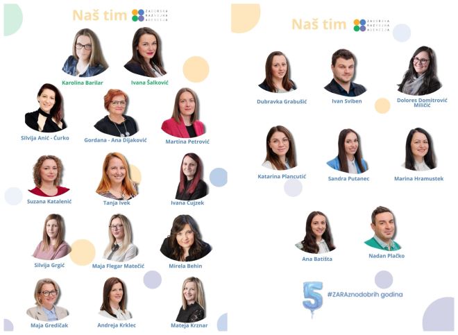 ZARA danas zapošljava 22 djelatnika, a to je tim kreativnih i inovativnih pojedinaca koji svojom individualnošću oblikuje jedinstvenu kulturu Agencije. Vizija tima je bila da Zagorska razvojna agencija bude pokretač održivog razvoja Krapinsko – zagorske županije, dok danas teži tome da bude partner izvrsnosti i kreativnosti koji oblikuje održivi razvoj županije. Ako ste se pitali što to Agencija točno radi, njena ravnateljica, Karolina Barilar, to je konkretnije objasnila: ˝Mi smo ti koji brinemo da ne nedostaje neki papir˝.