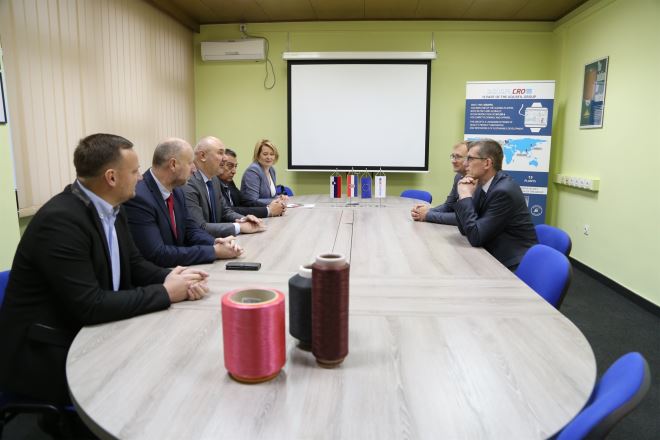 Predsjednik uprave tvrtke Saša Muminović i član Uprave Angelo Cordella održali su sastanak s veleposlanikom i delegacijom Županije i Grada, a potom poveli goste u obilazak ove tvrtke, koja se bavi preradom i doradom poliamidnih vlakana.