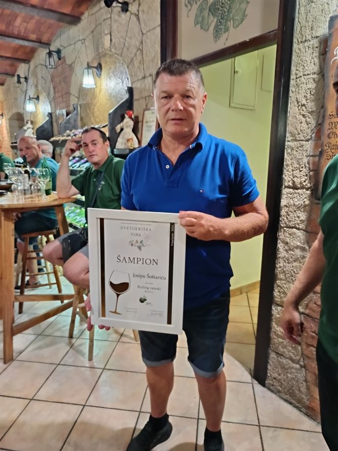 Josip Šoštarić je ujedno i šampion Vinarijade sa vinom Rajnski rizling i dodatno je nagrađen šampionskim peharom u obliku posebno stilizirane čaše i poklon bonom koji će moći iskoristiti za jačanje promocije svojih vina.