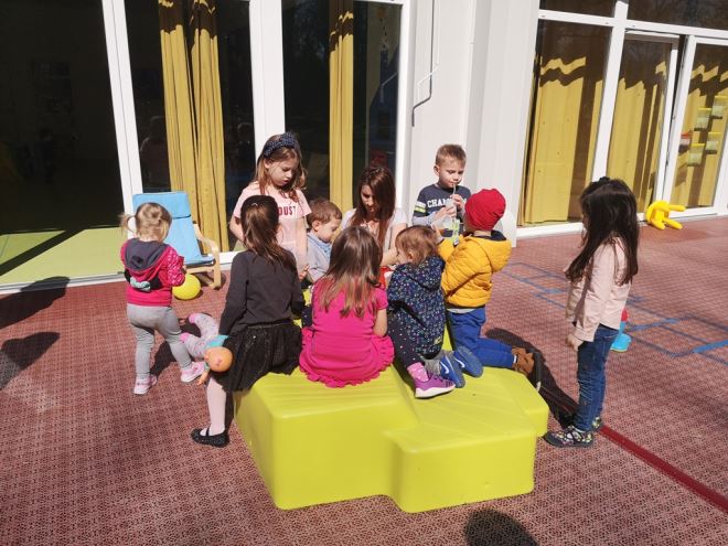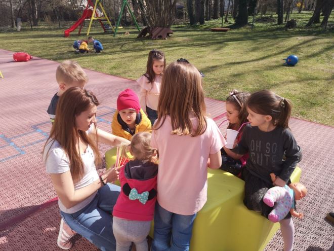 Gradili su veliko gnijezdo od šiba i igrali svoje igre na koje su već naviknuti kroz svakodnevna zajednička druženja. Dok su neki mališani brzo potrčali prema svojim roditeljima kad su se vratili po njih, drugi bi još bili ostali igrati se. Roditelji su pohvalili ovu ideju vrtića i zahvalili tetama što su im omogućile da odvoje malo vremena za sebe na kavi.