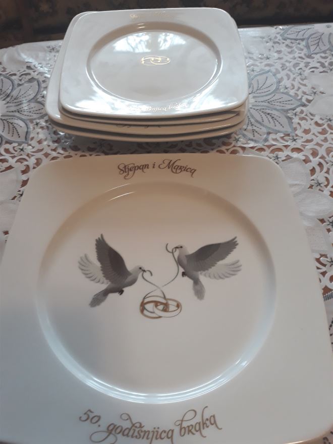 - Dobili smo sina Stjepana koji se oženio, pa sada imamo i dva unuka koji su danas već odrasli dečki. Dobri su i poštivaju nas. Dobili smo i dobru snahu. Samo da nas zdravlje posluži – zaključili su supružnici Vukić koji su na svojoj obljetnici pedesete godišnjice braka imali pedesetero ljudi, što je duplo više nego što su imali prije pola stoljeća na samoj svadbi, a tim je i veselje bilo veće. 'Mladenci' su za zlatni pir dobili poklon, tanjure s posvetom, njihovim imenima i golubovima kao simbolom ljubavi i životne obnove.