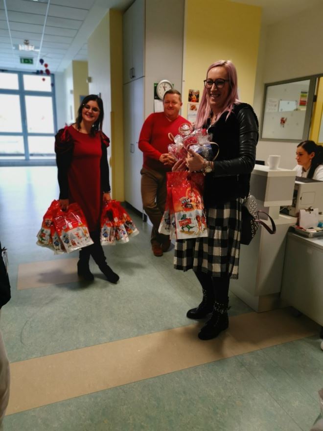 Djeci su pripremili prigodne poklone koji će im uljepšati vrijeme provedeno u bolnici, uz naravno, neizostavne slatkiše koji su izmamili najviše osmijeha na licima mališana. Uz predsjednika i potpredsjednicu gradske organizacije Zabok Mladena Galina i Vlatke Vrček – Krajačić u posjetu pedijatriji OB Zabok bili su u predsjednik Županijske organizacije Stranke rada i solidarnosti Anđelko Topolovec te saborska zastupnica Marija Puh. Osim u kratkom razgovoru s djecom i roditeljima, posjetitelji iz Stranke rada i solidarnosti prokomentirali su sa zaposlenicima pedijatrije princip rada i mogućnost smještaja djece s roditeljima. - Djeca puno lakše prođu kroz hospitalizaciju kada postoji mogućnost da roditelji budu uz njih, zato smo ponosni što u našoj bolnici to možemo omogućiti našim malim pacijentima - istaknuli su medicinsko osoblje i šef pedijatrije.