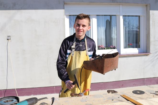 Lovro Pozaić iz Poznanovca, učenik osmog razreda OŠ Bedekovčina već kao pravi majstor s iskustvom kuje, brusi, vari…, a školovanje će nastaviti za mehatroničara