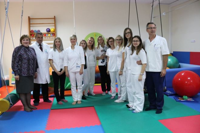 Poslije kratkog obilaska Centra, u Specijalnoj bolnici za medicinsku rehabilitaciju predstavljena je novouređena dvorana za ranu intervenciju kod najmlađih. Sunčica Martinec, specijalist fizikalne medicine i rehabilitacije, liječnica i specijalist voditelj odjela za medicinsku rehabilitaciju djece Specijalne bolnice za medicinsku rehabilitaciju Krapinske Toplice istaknula je kako je ova ustanova već dugi niz godina prepoznata kao ustanova koja pruža usluge s područja rane intervencije i neurorazvojne terapije za velik broj djece. – Obrađujemo i po 100 slučajeva dnevno, a ova dvorana za senzornu integraciju proširenje je djelatnosti naše ustanove. Veliki je značaj senzorne integracije, jednako kao i motoričkog razvoja, a ova će dvorana znatno podići kvalitetu usluga na znatno veći nivo – rekla je Martinec uz zahvale Županiji, Bolnici i Centru na stalnoj pomoći i podršci.