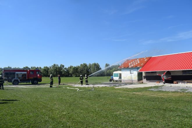 Na javnoj pokaznoj vježbi VZO Marija Bistrica prikazan je mogući požar aviona i zgrade aerokluba