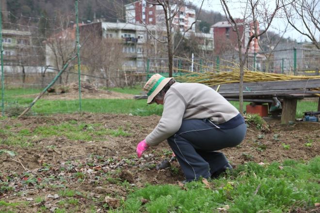 Slavica i Grga Vukoja tek su jedni od 30 – ak stanara koji imaju svoj 'komadić' povrtnjaka na zemljištu u tzv. vrtovima Dolac, na potezu prema Hušnjakovom. Zemljište je podijeljeno na manje parcele, stanarima koji žele obrađivati vrt. – Ne žele svi, ali oni koji hoće bolje živjeti, uzgajaju svoje povrće. Zemljište je gradsko, Grad nam ga je dao na upotrebu, da možemo obrađivati zemlju, a ako im bude trebalo, ako će se tu nešto graditi, mi im natrag prepuštamo zemlju. Do tada možemo uživati – vedro nam je ispričao 83 – godišnji Grga, koji sa Slavicom obrađuje oko 200 kvadrata. To im, kaže, puno znači. – Oboje smo u mirovini, ali ne mirujemo. Tu sadimo cvijeće, evo sad imamo lijepe narcise, zasadimo i posijemo peršin, mrkvu, bob, grašak, krumpir, salatu, jagode, svega pomalo. Dobro dođe, radije jedemo ono što sami uzgojimo, nego povrće iz trgovine i tržnice. Lijepo je imati nešto svoje. A osim toga, to nam je i razonoda i 'bodovi' zdravlja. Zadovoljstvo je rad na friškom zraku, ne moramo plaćati skupe vježbe i fitnesse, imamo besplatnu rekreaciju, jer svakog dana na vrtu provedemo barem nekoliko sati – ispričao je Grga. Frezanje plate, a sve ostalo rade sami. Zemlja je kvalitetna, pjeskovita, kaže Grga, i povrće dobro uspijeva, a sade ga već 15 – ak godina. – Evo, prvo ide grašak, bob, salata, onda blitva, pa špinat. Ove godine zima je potrajala, pa su prvi radovi tek krenuli.