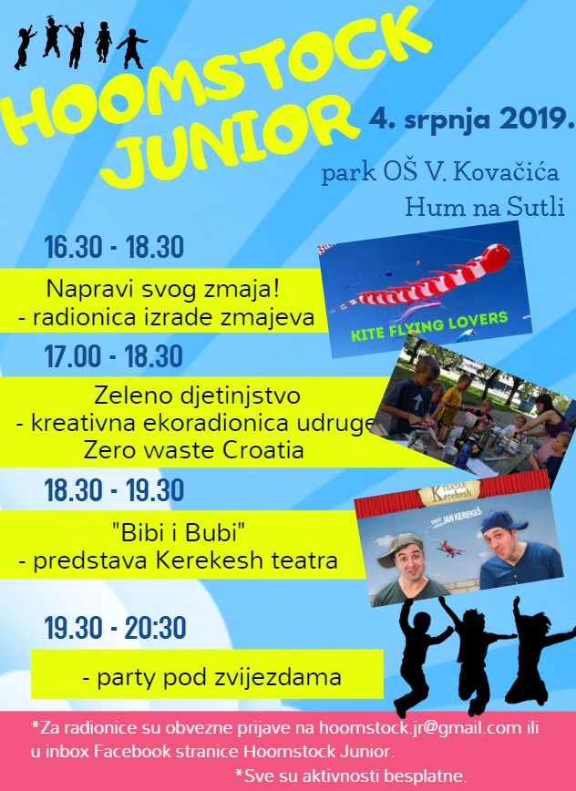Početak ovogodišnjeg ljeta u Humu na Sutli obilježit će još jedno izdanje dječjeg festivala Hoomstock Junior i rock festivala Hoomstock. Hoomstock junior će se održati u četvrtak 4. srpnja.