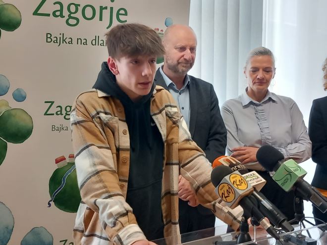 S velikim zadovoljstvom krapinsko - zagorski župan Željko Kolar je danas, u društvu pročelnika Upravnog odjela za poslove župana i Županijske skupštine Karla Frljužeca, pročelnice Upravnog odjela za obrazovanje, kulturu, šport i tehničku kulturu Mirjane Smičić Slovenec i direktorice Turističke zajednice Krapinsko - zagorske županije Sanje Škrinjar, u svom uredu ugostio zagorskog superstara Dinu Miklaužića koji je u Krapinu iz Huma na Sutli stigao sa svojom majkom Jelenom i sestrom Lorom. Bila je ovo prilika za čestitke Dini, a prema riječima župana ono što je mladi, talentirani pjevač i pobjednik druge sezone RTL-ovog showa Zvjezdice prezentirao u showu Superstar, izuzetno je glazbeno umijeće.