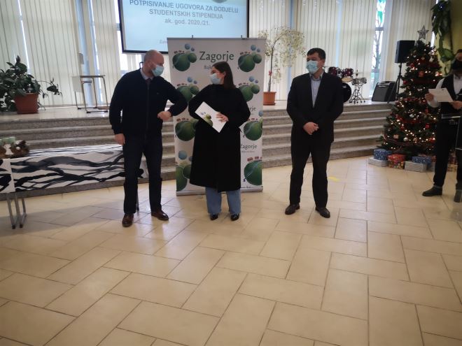 Simbolično, predstavnicima studenata ugovore o stipendiji dodijelili su župan Željko Kolar i njegov zamjenik Anđelko Ferek Jambrek.