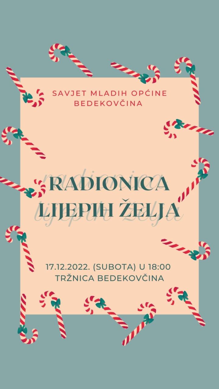 Ovog vikenda u Bedekovčini Advent počinje s pretpremijerom nove komedije Baka Sofija u izvedbi Dramske udruge „KAJ“ iz Zaboka koja će se održati u petak 16.12.2022. u 19 sati u Vatrogasnom domu Poznanovec. U subotu na programu su zabavne radionice za djecu koje počinju u 18,00 sati na tržnici u centru Bedekovčine. Sve će biti popraćeno mirisnim i bogatim sajmom s ponudom OPG-a i udruga na kojem ćete moći obaviti božićni shopping.