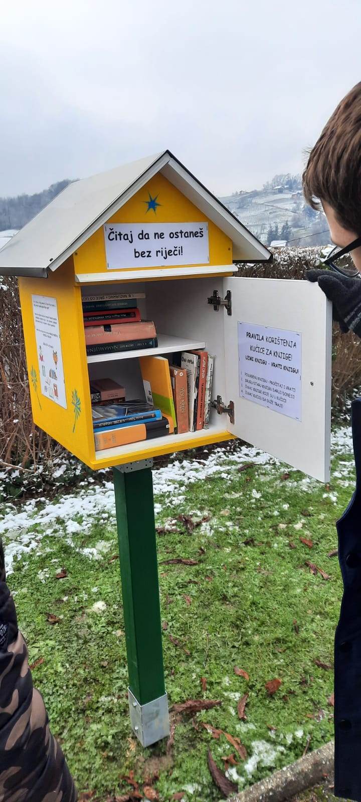 – Postavljanjem malih kućica za knjige na strateška mjesta, na kojima je pojačana frekvencija djece i mladih, knjiga bi se učinila dostupnijom. Kućice za knjige sadržavale bi prostor za 15 knjiga. Korisnik bi mogao uzeti knjigu po želji i vratiti je nakon čitanja. Osim posudbe knjiga, bila bi omogućena i donacija knjiga u odgovarajući prostor kućice čime bi se u projekt uključili i stanovnici lokalne zajednice. Spomenimo da je knjige, koje su bile za otpis, ustupila Gradska knjižnica Krapina. Na taj smo način tim knjigama produžili život i iznova ih učinili korisnima. Hvala Gradskoj knjižnici Krapina – rekla nam je učiteljica hrvatskog jezika Gordana Bartol.