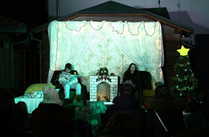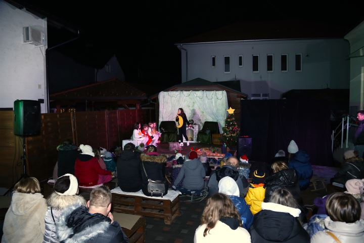 Predstava Božićna priča je izvedena 23. prosinca na otvorenom u atriju Topličke 7 u Donjoj Stubici kod Kulturno- turističko informativnog centra čemu je definitivno pridonijelo suho, iako hladno vrijeme te večeri utoliko više što su scenografija i pojedini scenski i audio-vizualni efekti bili osmišljeni za izvedbu na otvorenom. A sam atrij kao prostor na otvorenom je već iskušan prilikom organizacije dolaska Svetog Nikole tri tjedna ranije tako da je nadograđena montažna pozornica od paleta i dodana upečatljiva scenografija i rasvjeta, a osim na klupicama od paleta (koje je izradio STUB-KLUB na svojim kreativnim radionicama tokom protekle godine) djeca su sjedila na mnoštvu malih saonica što je bila dodatna čar cijeloj predstavi.