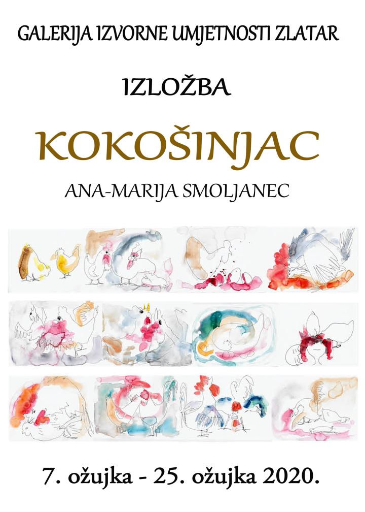 U zlatarskoj Galeriji izvorne umjetnosti u subotu, 7. ožujka, bit će otvorena samostalna izložba Ane-Marije Smoljanec iz Križevaca. Njezino ime nije nepoznato zlatarskoj likovnoj publici, jer je u Zlataru samostalno izlagala i 2014. godine. Članica je zlatarske Udruge „Miljenko Mlakar“. Njezina zlatarska izložba održava se nakon što je u križevačkoj Galeriji K2 zatvorena samostalna izložba „Kokošinjac“. Izložba je otvorena do 25. ožujka, subotom i nedjeljom od 9 do 11 sati.