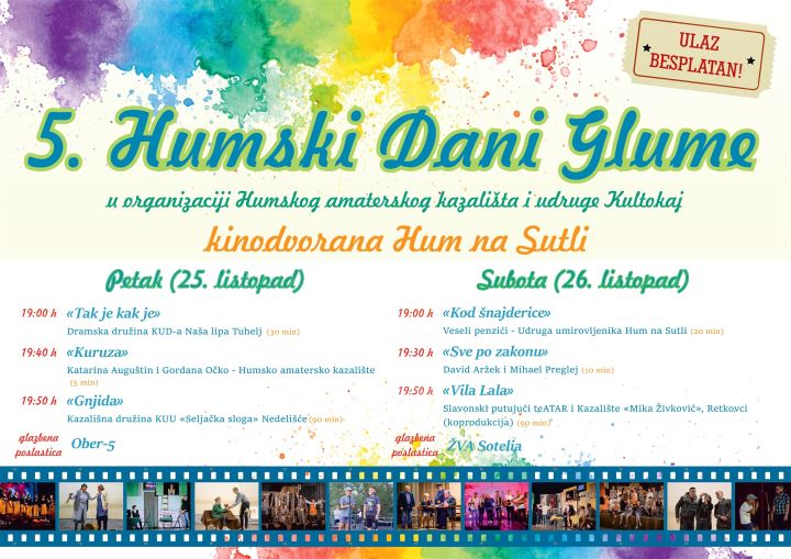 Organizatori – Udruga Kultokaj i Humsko amatersko kazalište, pozivaju sve da se pridruže ovom jedinstvenom događaju, čiji je ulaz besplatan. Budite dio tradicije koja već pet godina zaredom obogaćuje kulturu i društveni život Huma na Sutli, dok uživate u izvedbama koje izazivaju smijeh, razmišljanje i divljenje.