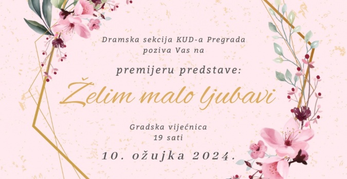 Kulturno umjetničko društvo Pregrada večeras u 19 sati u vijećnici Grada Pregrade, premijerno izvodi svoju prvu melodramu pod nazivom "Želim malo ljubavi".