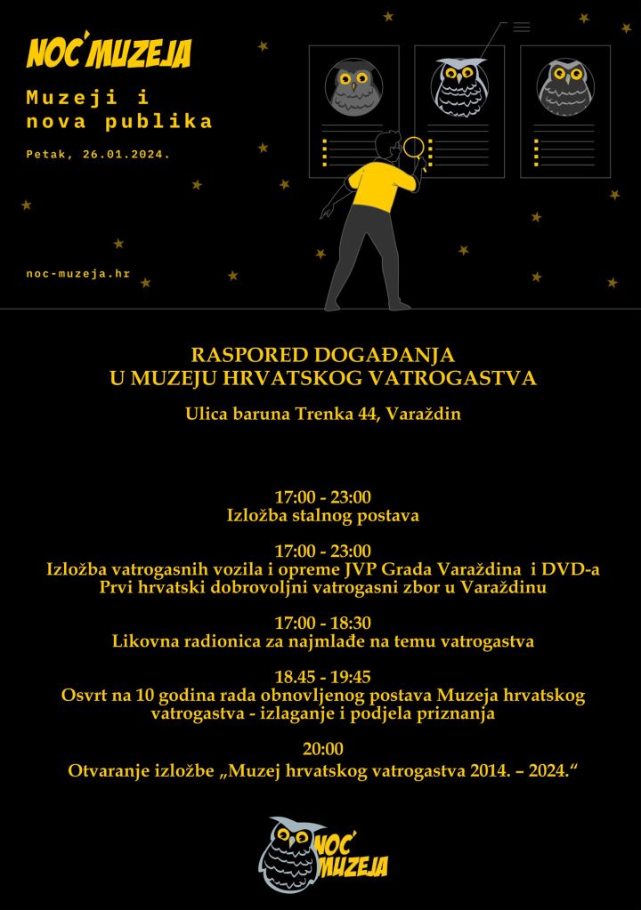 Muzej hrvatskog vatrogastva (Ulica baruna Trenka 44, Varaždin) i ove godine sudjeluje u manifestaciji Noć muzeja koja će se u organizaciji Hrvatskog muzejskog društva održati u petak 26. siječnja.