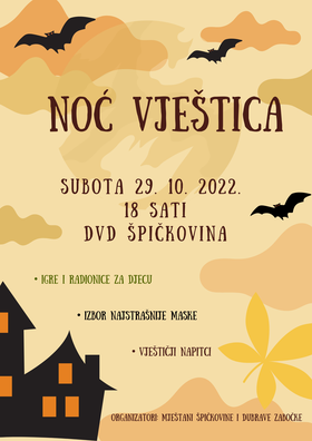 Mještani Špičkovine i Dubrave Zabočke danas u 18 sati organiziraju Noć vještica u DVD – u Špičkovina. Pripremaju igre i radionice za djecu, vještičje napitke, a birat će se i najstrašnija maska. Dođite!