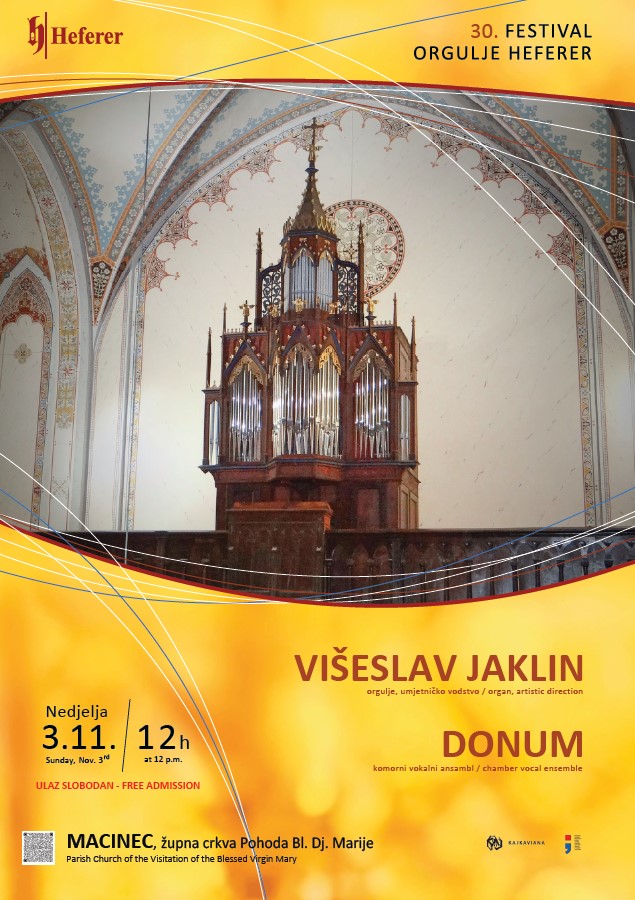 U sklopu jubilarnog 30. Festivala Orgulje Heferer, na rasporedu je još jedan koncert, koji će se održati u nedjelju, 3. studenog 2024. godine u 12 sati u župnoj crkvi Pohoda Blažene Djevice Marije u Macincu.