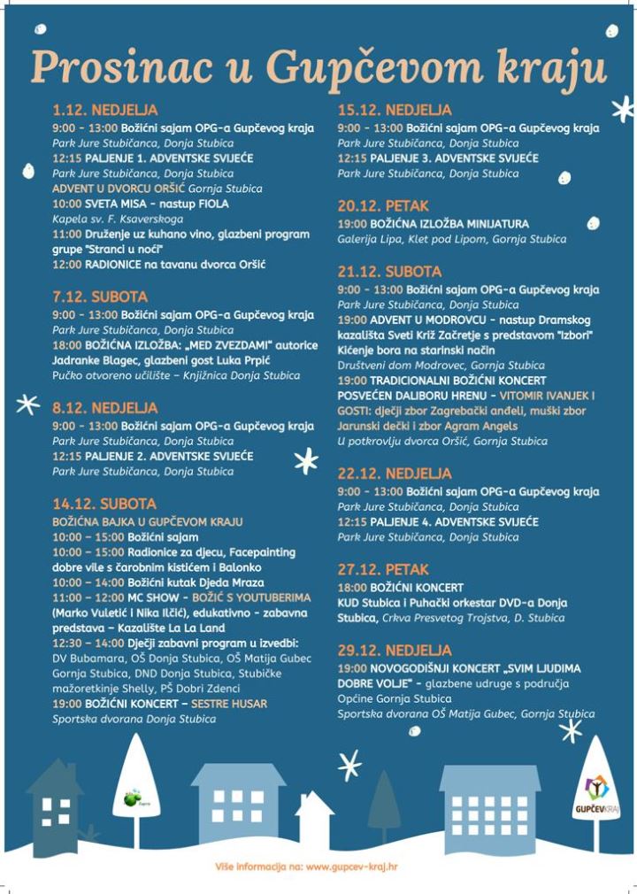 Manifestacija 'Prosinac u Gupčevom kraju' započela je danas, događanjima u Donjoj i Gornjoj Stubici. Tako je u Donjoj Stubici, nakon svete mise, u Parku Jure Stubičanca prvu adventsku svijeću upalio donjostubički gradonačelnik Nikola Gospočić.