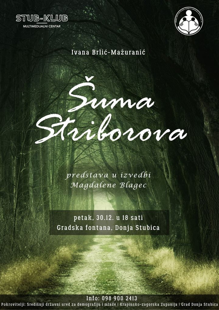 I to ne bilo kakvu, već onu, koju smo svi čitali, koju svi znamo! Dakle, u petak 30. prosinca kod Fontane prijateljstva u samom centru Donje Stubice izvesti će se predstava za djecu Šuma Striborova, po nadaleko poznatoj bajci hrvatske književnice Ivane Brlić-Mažuranić, koja je inače sastavni dio svake školske lektire niza generacija.