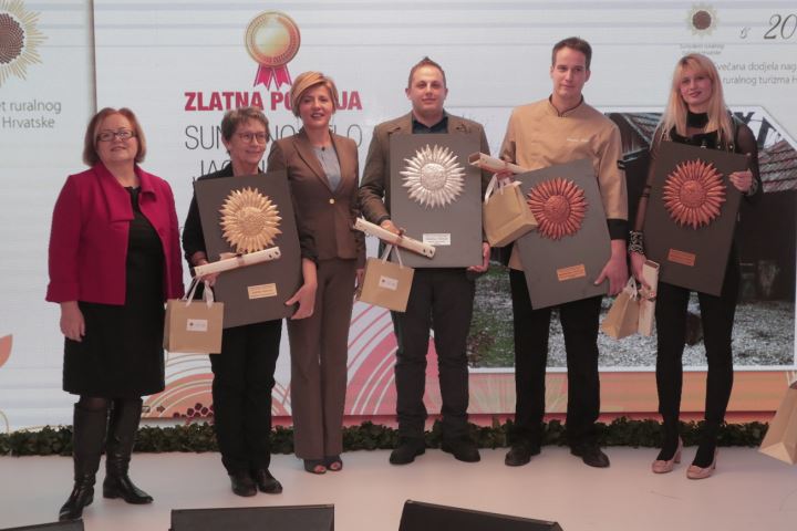 Ministar turizma Gari Cappelli, dobitnici nagrade za životno djelo Stjepan Cukor i dr.sc. Eduard Kušen te predsj. Hrvatske udruge za turizam i ruralni razvoj Klub članova "Selo“ Dijana Katica
