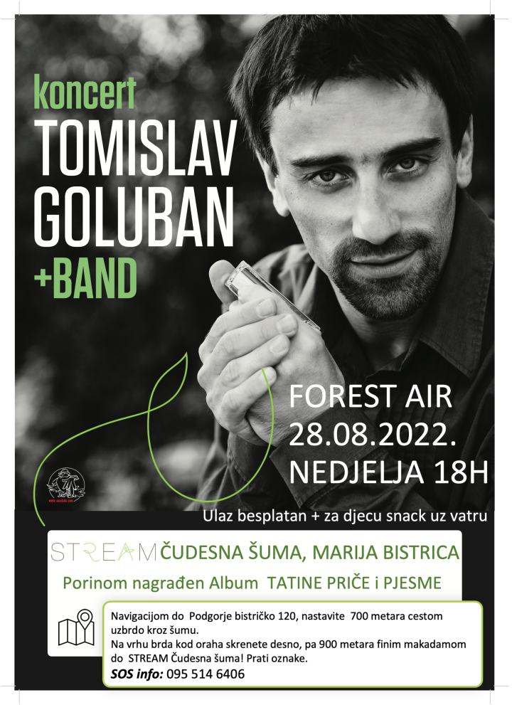 U sjedištu udruge Čudesna šuma u Mariji Bistrici organizira se ove nedjelje 28. kolovoza u 18 sati, poseban događaj - Forest Air koncert poznatog umjetnika i majstora usne harmonike Tomislava Golubana.