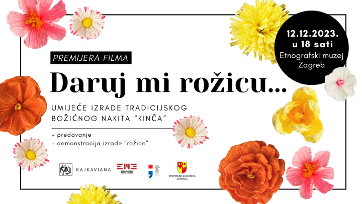 Udruga Kajkaviana u suradnji s partnerom Etnografskim muzejom iz Zagreba osmislila je projekt s ciljem poticanja prenošenja i njegovanja kulturnoga dobra pod nazivom Daruj mi rožicu... (Umijeće izrade tradicijskog božićnog nakita "kinča"). Umijeće izrade tradicijskog božićnog nakita "kinča" s područja sjeverozapadne Hrvatske jest nematerijalno kulturno dobro zaštićeno oznakom Z-3405, u izvornim i drugim sredinama. Najvažniji produkt ovog projekta jest dokumentarno-edukativni film kojeg ćemo vam predstaviti na online pretpremijeri, a koji je nastao uz financijsku potporu Ministarstva kulture i medija Republike Hrvatske te Krapinsko-zagorske županije.