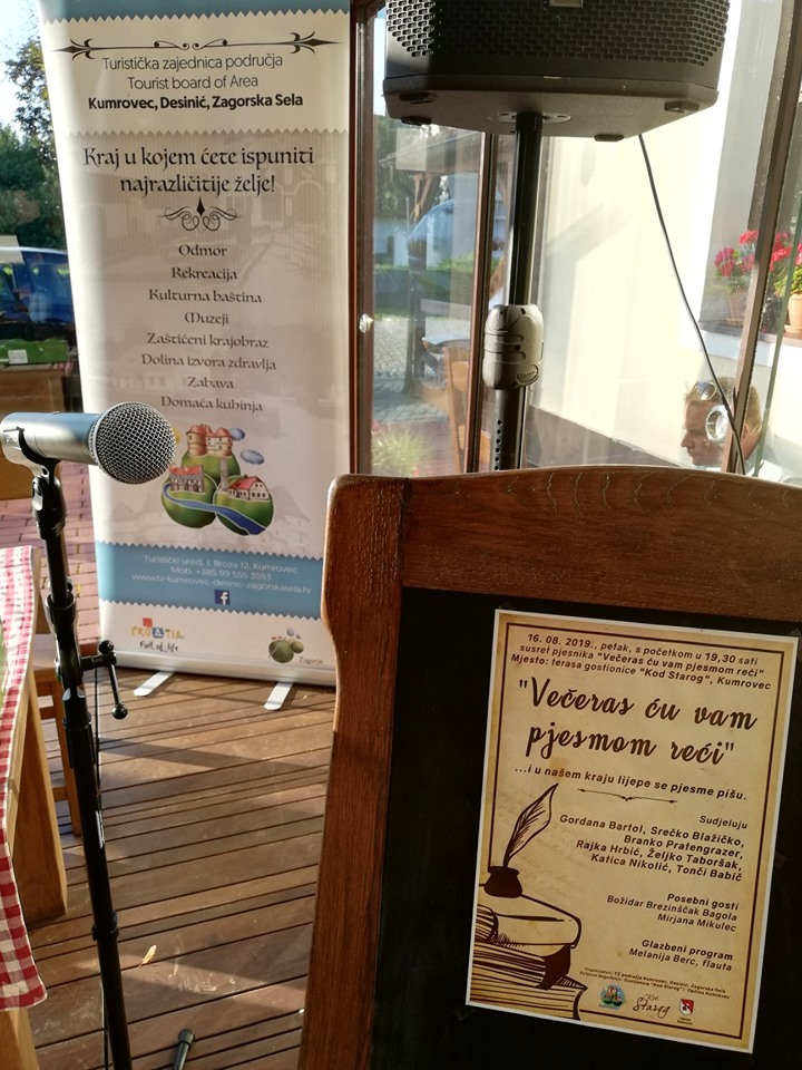 Na terasi Gostionice „Kod Starog“ u Kumrovcu, u petak, 16. kolovoza, održan je 3. Susret pjesnika „Večeras ću vam pjesmom reći“, čiji je cilj promocija lokalnih pjesnika i pjesničkog stvaralaštva te podizanje kvalitete imidža turističke destinacije Po plavem trnaci.