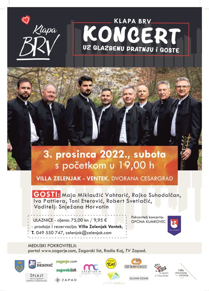 Sedam godina aktivnog djelovanja proslavit će popularna zagorska Klapa Brv prigodnim koncertom koji će se održati u subotu, 3. prosinca 2022. u Villi Ventek u Zelenjaku.