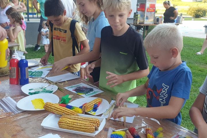 Likovna radionica “Od zrna do slike” privukla je maštovitost mladih umjetnika. Koristeći zrna kukuruza kao svoj glavni alat, djeca su stvarala mozaik na papiru, iskazujući svoju kreativnost na jedinstven i zabavan način. Festival je također ponudio mogućnost “FACE PAINTING-a” kojim su se djeca mogla pretvoriti u svoje omiljene likove.