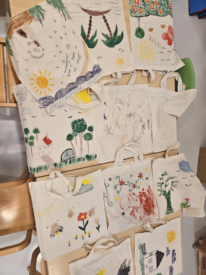 Unatoč tome, u prostoru vrtića djeca su zajedno s roditeljima i odgojiteljicama sadila ukrasno cvijeće u tegle, obojali su drvenu klupicu od paleta te su oslikavali višekratne platnene vrećice koje će podijeliti sumještanima kako bi ih potaknuli na korištenje višekratnih vrećica umjesto plastičnih.