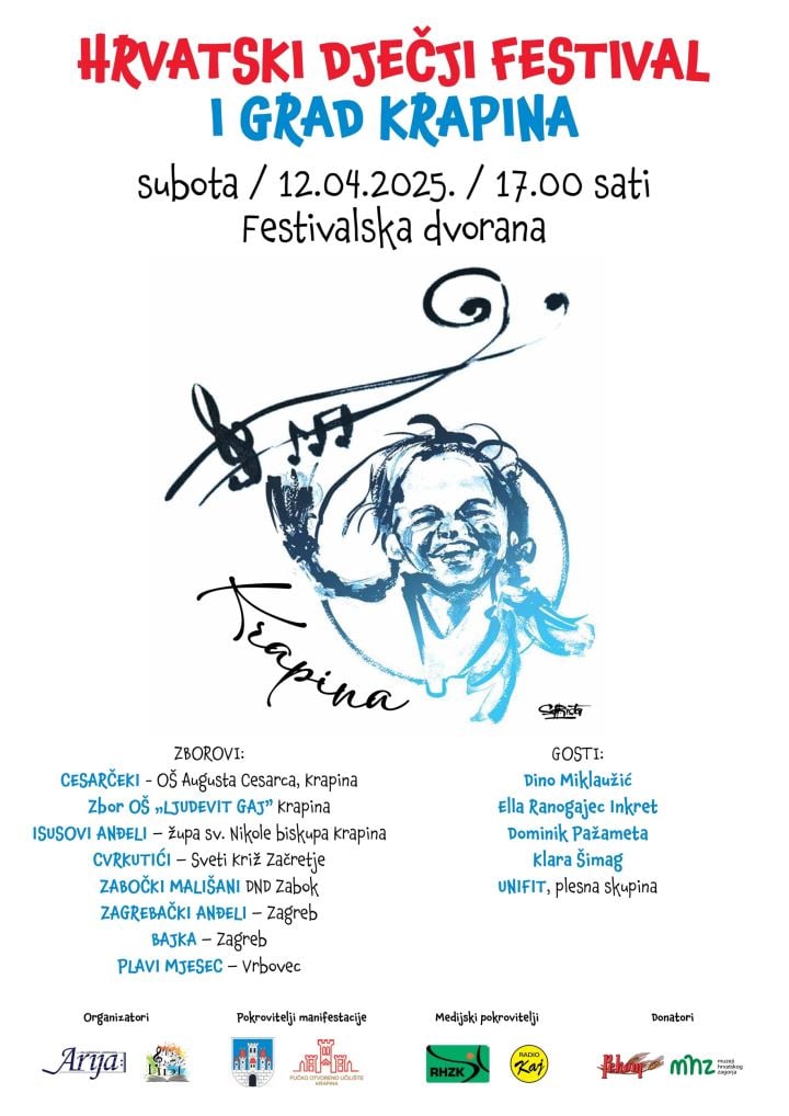 Manifestacija ‘Hrvatski dječji festival i grad Krapina’ prvi puta će se održati u Krapini, u Festivalskoj dvorani, u subotu 12. travnja u 17 sati.
