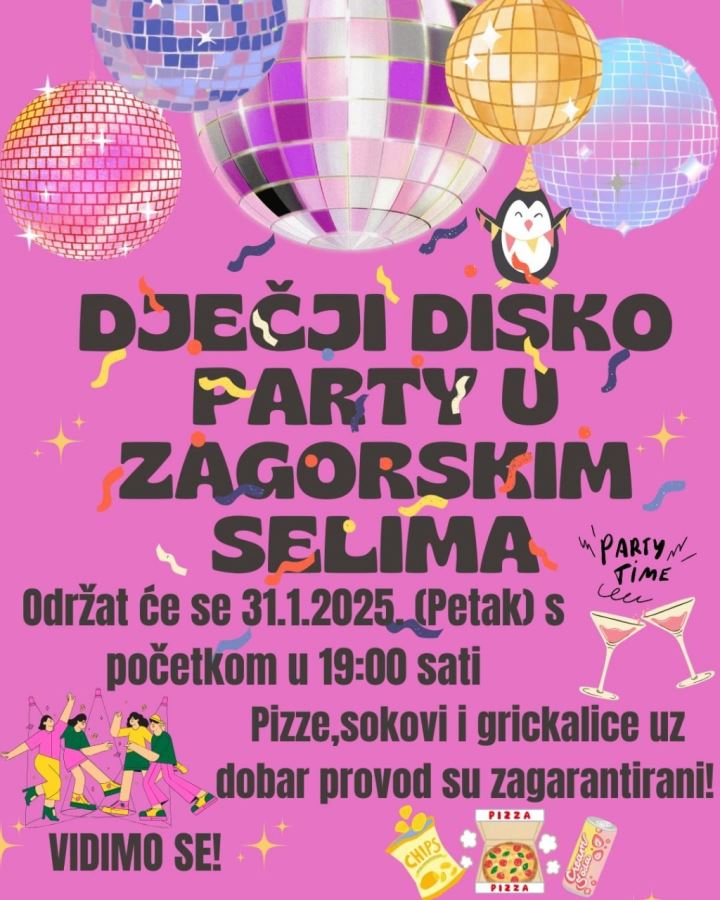 Zagorska Sela postaju pravo mjesto za zabavu jer će se u petak, 31. siječnja 2025., s početkom u 19 sati, u prostorijama Stare škole održati prvi ovogodišnji Dječji disko party!