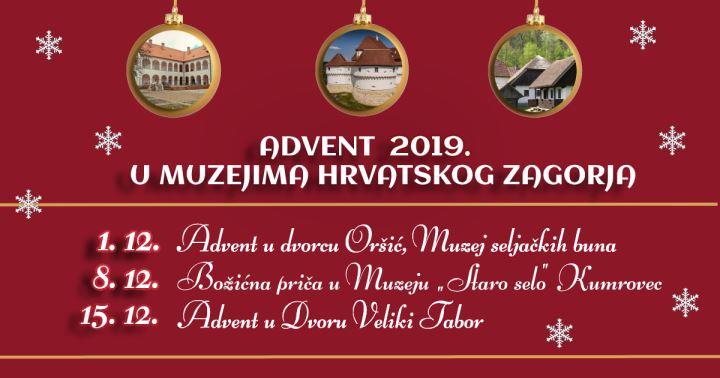 Adventska događanja će se održati u nedjelju 8. prosinca u Muzeju 'Staro selo' Kumrovec te u nedjelju 15. prosinca u Dvoru Veliki Tabor.